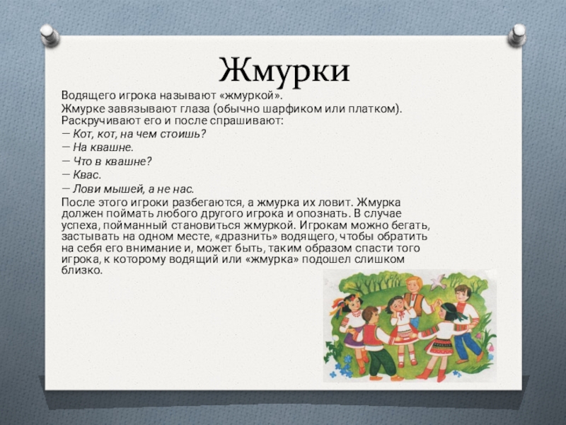 Жмурке завязывают глаза (обычно шарфиком или платком).