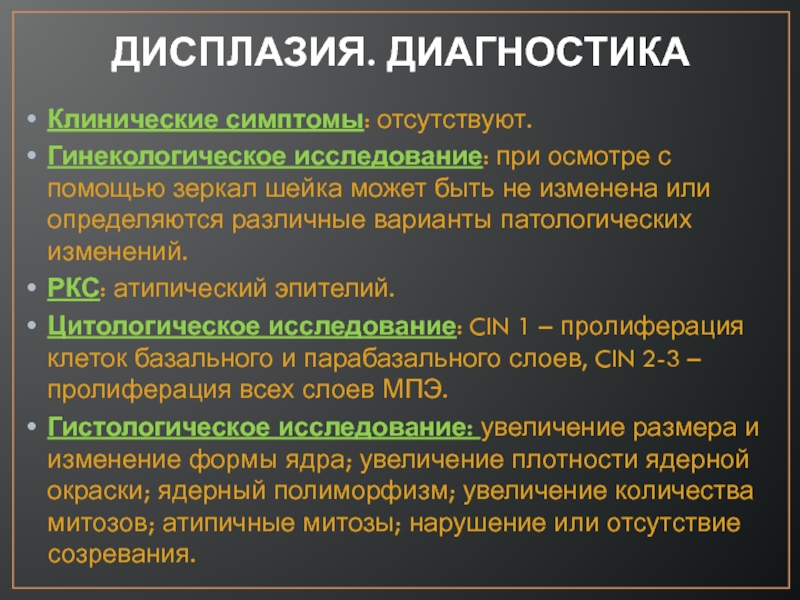 ДИСПЛАЗИЯ. ДИАГНОСТИКА