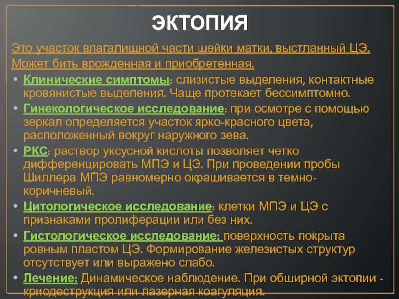 Эктопия – цилиндрический эпителий с перерождением по краям