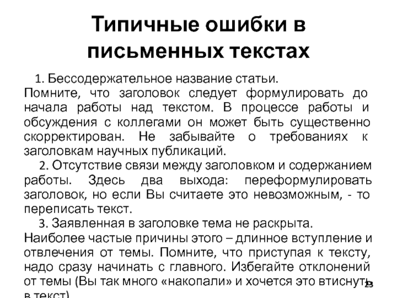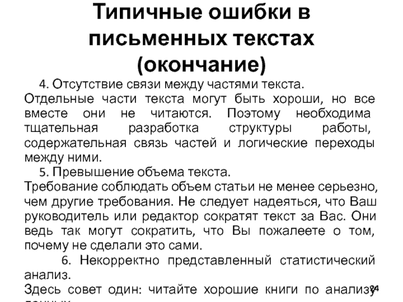 Слайд 24Типичные ошибки в письменных текстах (окончание)