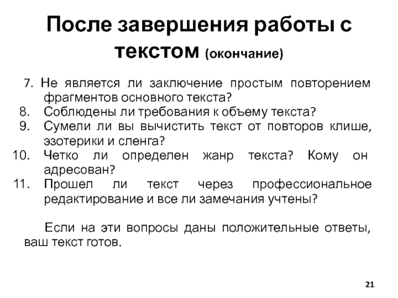 Если на эти вопросы даны положительные ответы, ваш текст готов.