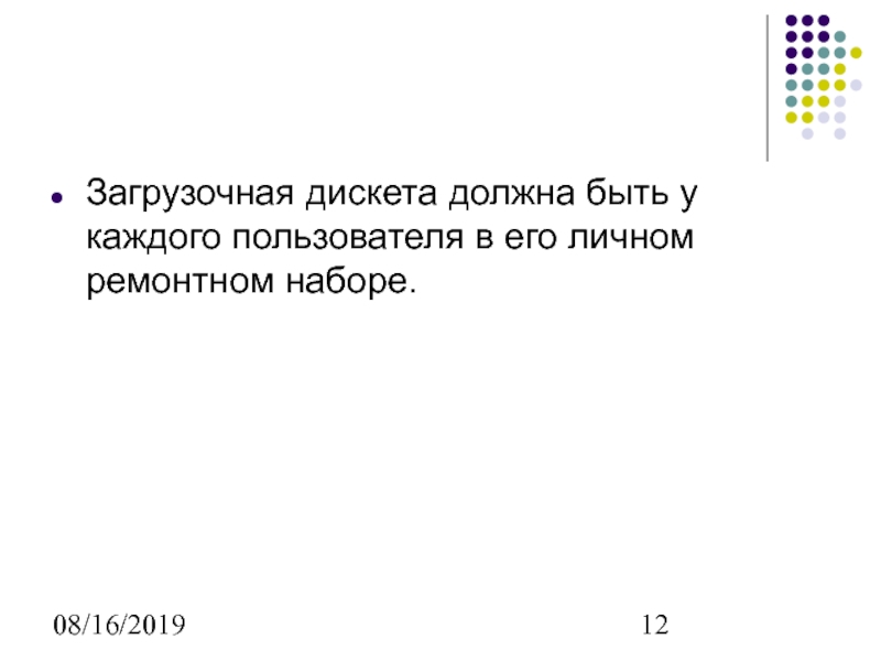 Загрузочная дискета должна быть у каждого пользователя в его личном