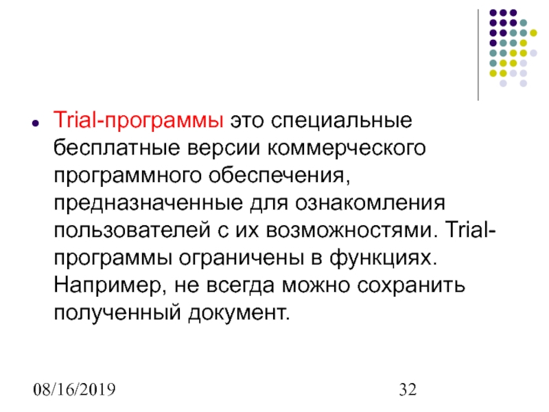 ознакомления пользователей с их возможностями. Trial-программы ограничены в функциях. Например,