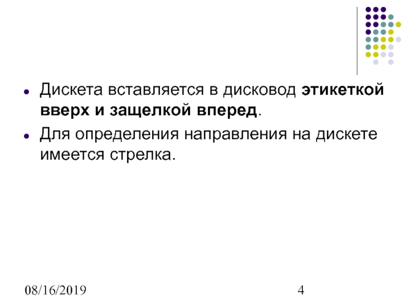 Дискета вставляется в дисковод этикеткой вверх и защелкой вперед.