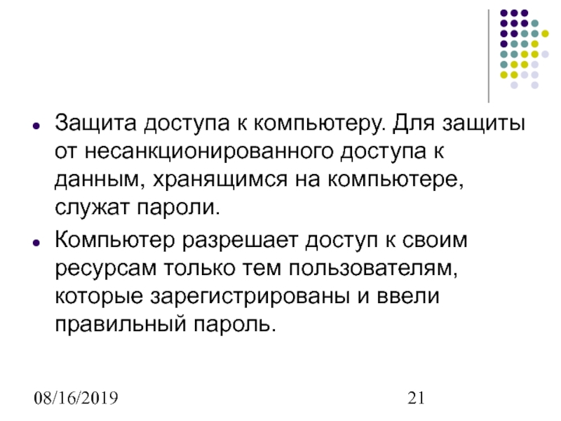 Защита доступа к компьютеру. Для защиты от несанкционированного доступа к