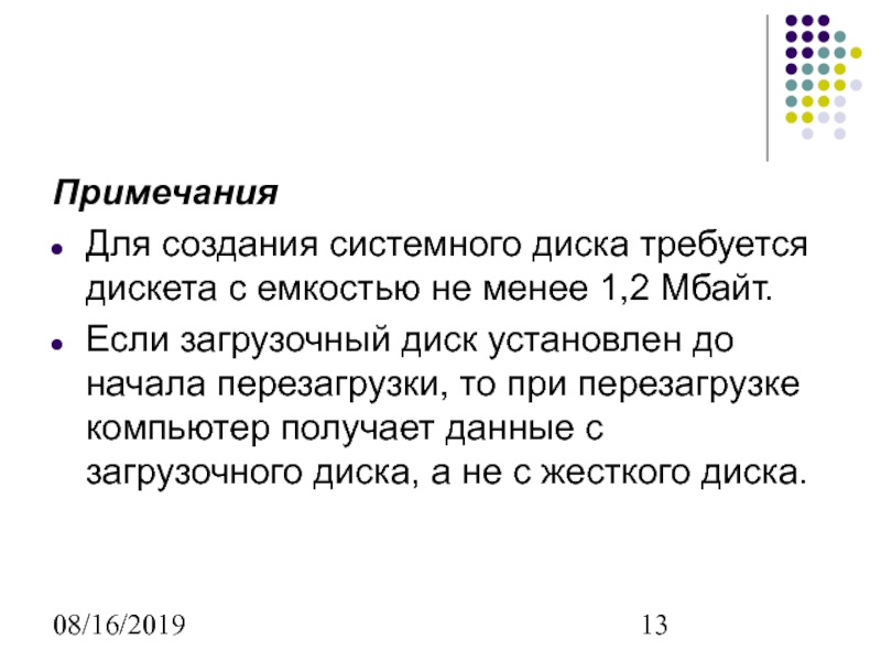 при перезагрузке компьютер получает данные с загрузочного диска, а не с жесткого диска.