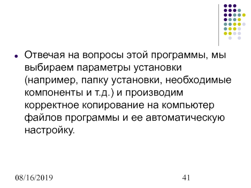 Отвечая на вопросы этой программы, мы выбираем параметры установки (например,