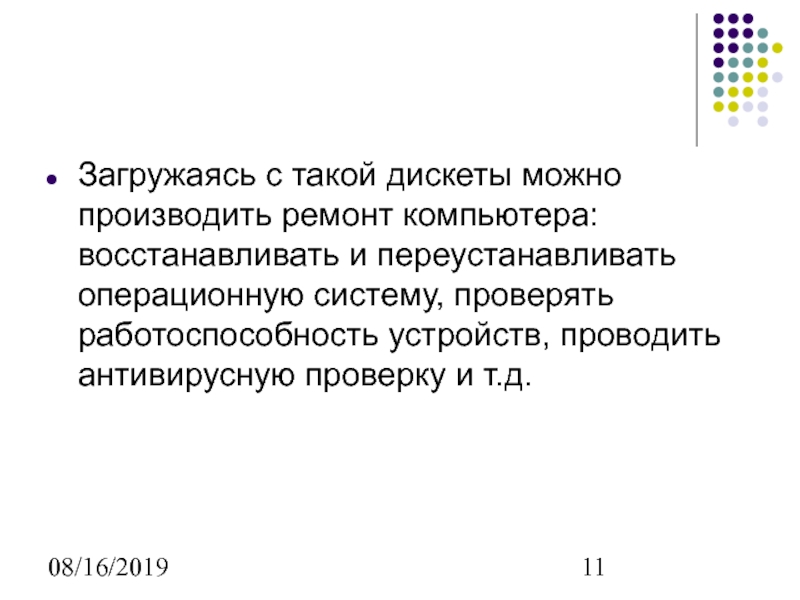 Загружаясь с такой дискеты можно производить ремонт компьютера: восстанавливать и