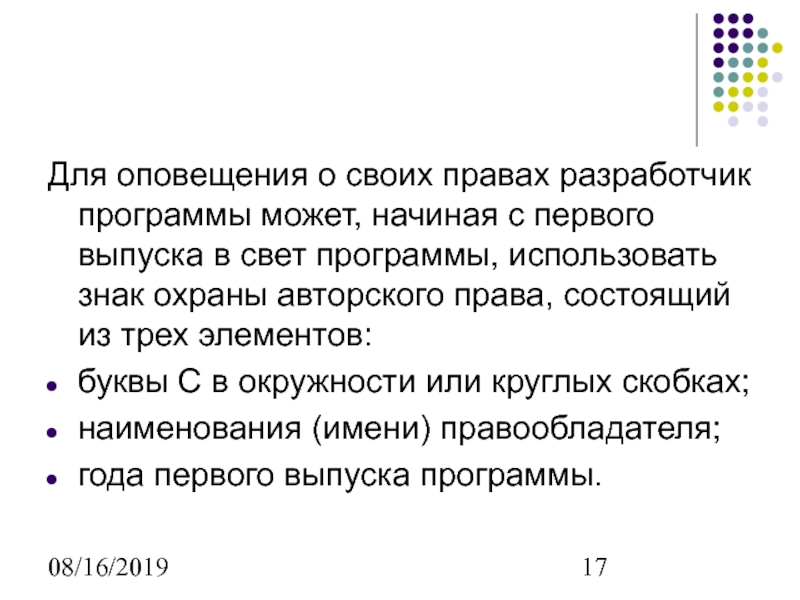 первого выпуска в свет программы, использовать знак охраны авторского права,