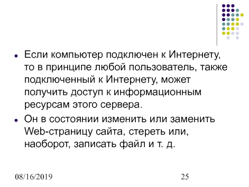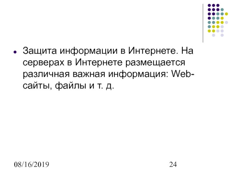 Защита информации в Интернете. На серверах в Интернете размещается различная