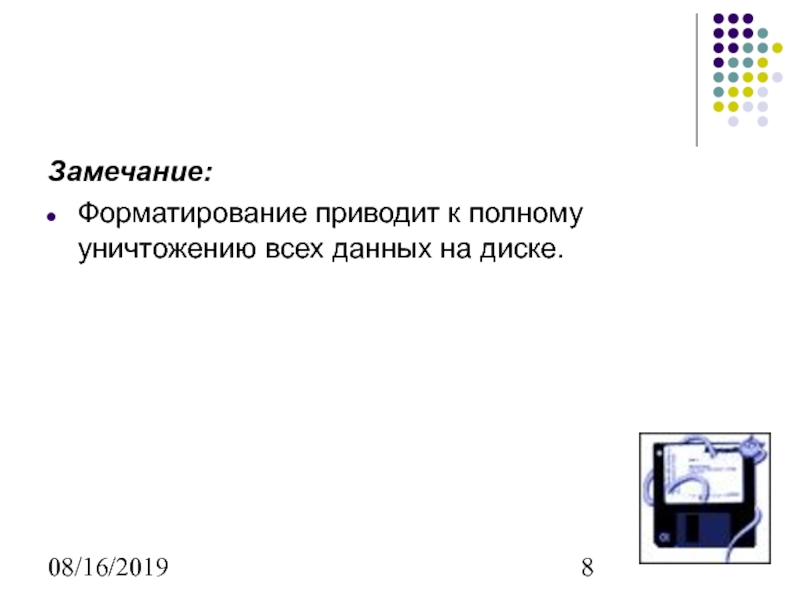 Форматирование приводит к полному уничтожению всех данных на диске.