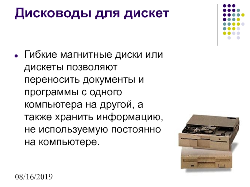 Практически все компьютеры имеют хотя бы один дисковод для дискет.