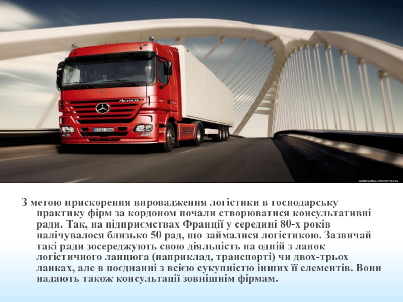 Слайд 4З метою прискорення впровадження логістики в господарську практику фірм за