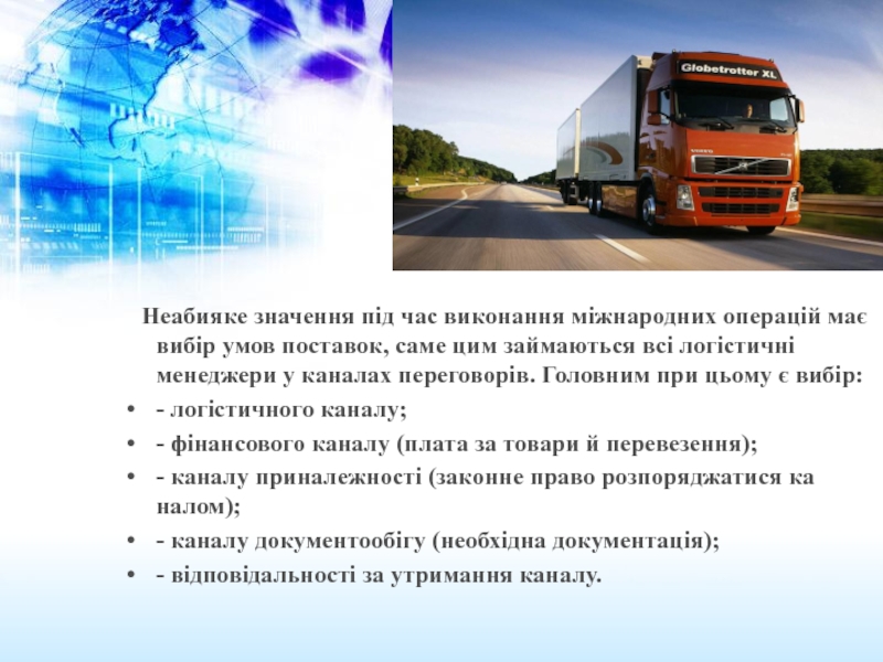 вибір умов поставок, саме цим займаються всі логістичні менеджери у