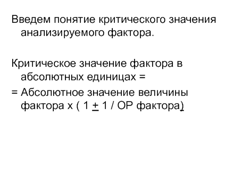 Слайд 78Введем понятие критического значения анализируемого фактора.