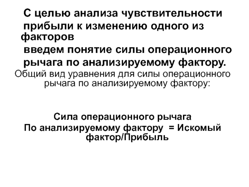 Общий вид уравнения для силы операционного рычага по анализируемому фактору: