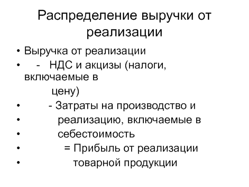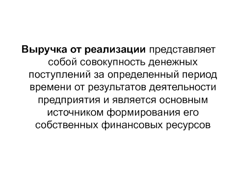 Слайд 3Выручка от реализации представляет собой совокупность денежных поступлений за определенный