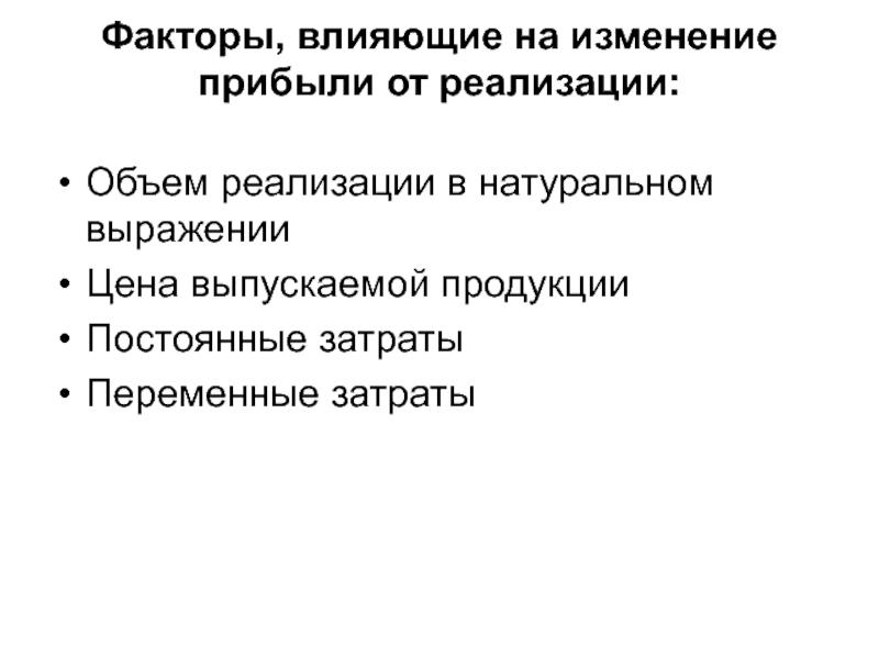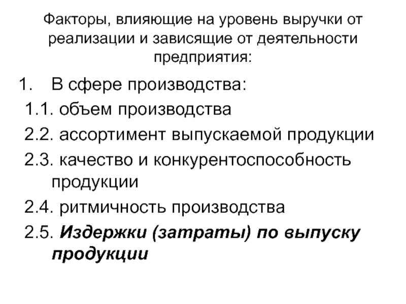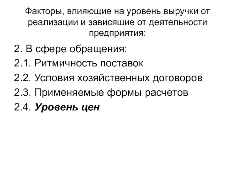 Слайд 6Факторы, влияющие на уровень выручки от реализации и зависящие от