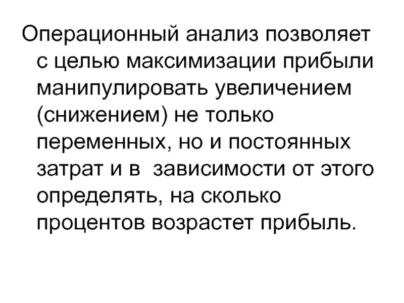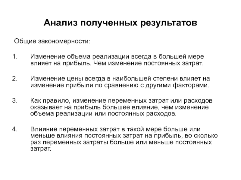 Как правило, изменение переменных затрат или расходов оказывает на прибыль большее влияние, чем изменение объема реализации или постоянных расходов.