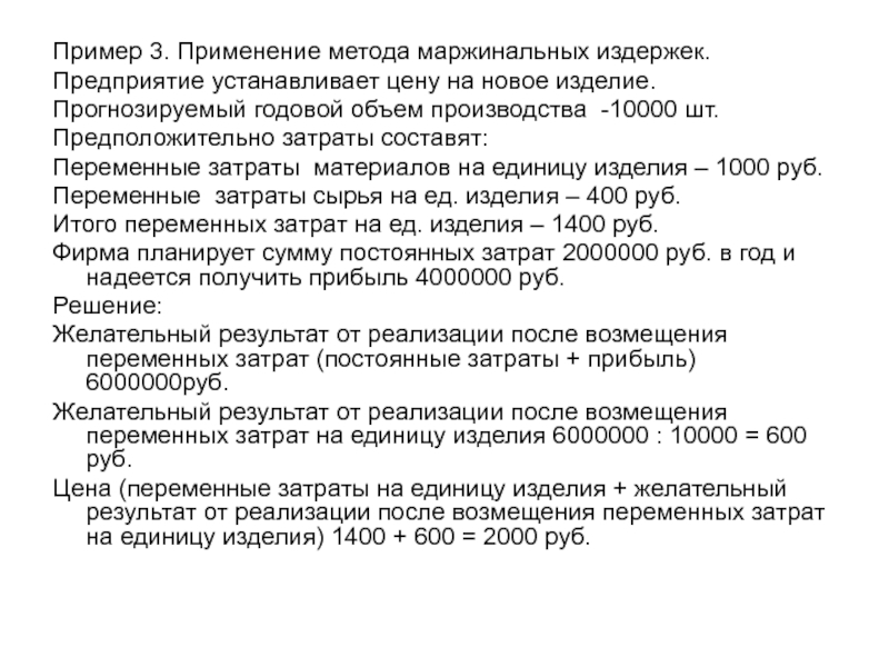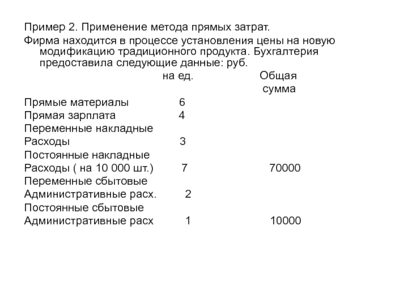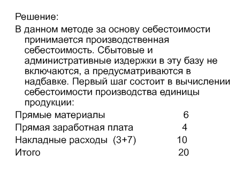 Слайд 18Пример 1. Применение метода полных издержек.