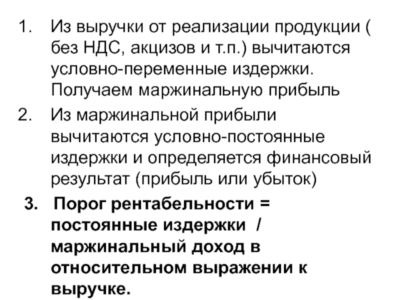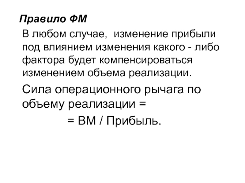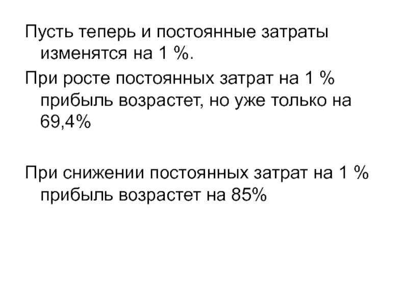 Влияние переменных затрат в такой мере больше или меньше влияния постоянных затрат на прибыль, во сколько раз переменных затраты больше или меньше постоянных затрат.