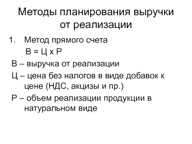 Слайд 7Методы планирования выручки от реализации