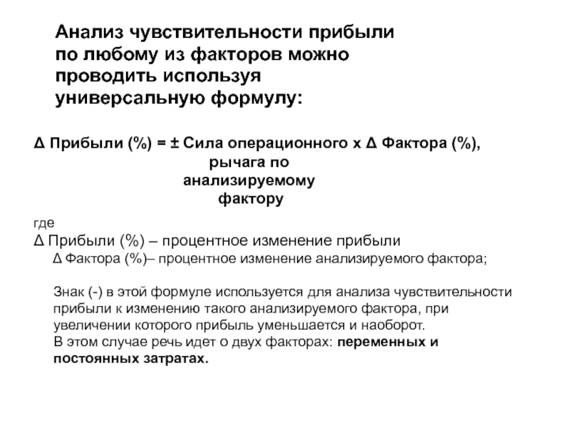 Знак (-) в этой формуле используется для анализа чувствительности