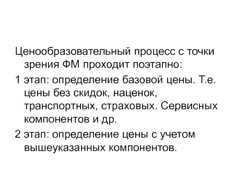 Слайд 13Ценообразовательный процесс с точки зрения ФМ проходит поэтапно: