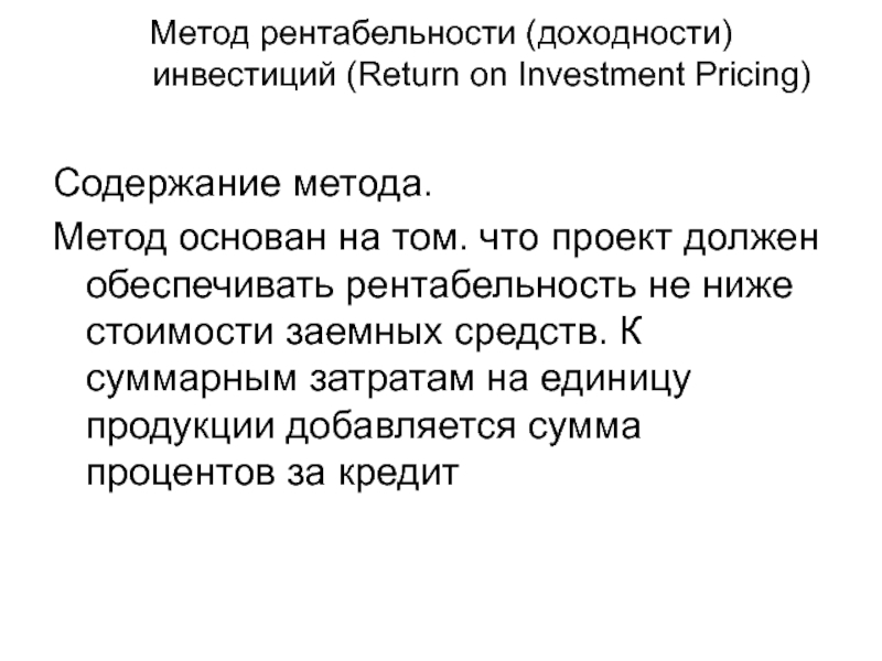 Метод рентабельности (доходности) инвестиций (Return on Investment Pricing)