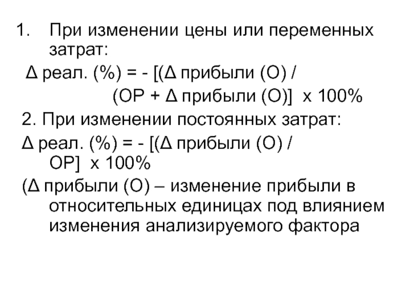 Δ реал. (%) = - [(Δ прибыли (О) / ОР] х 100%