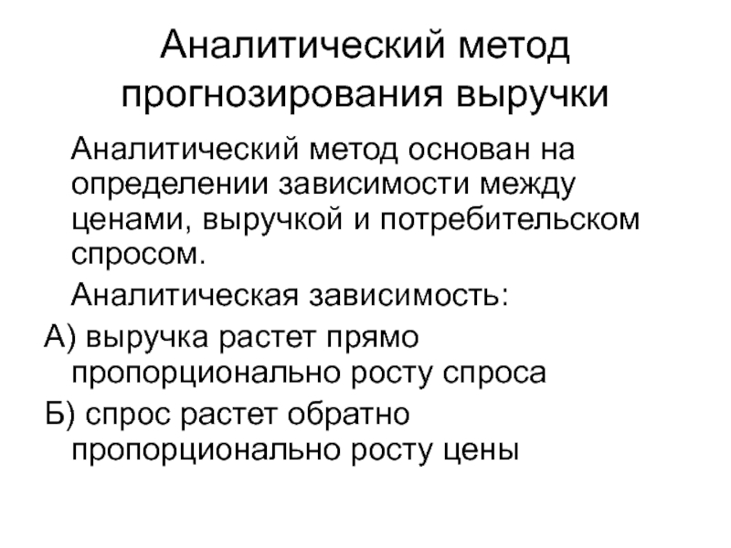 Слайд 9Аналитический метод прогнозирования выручки