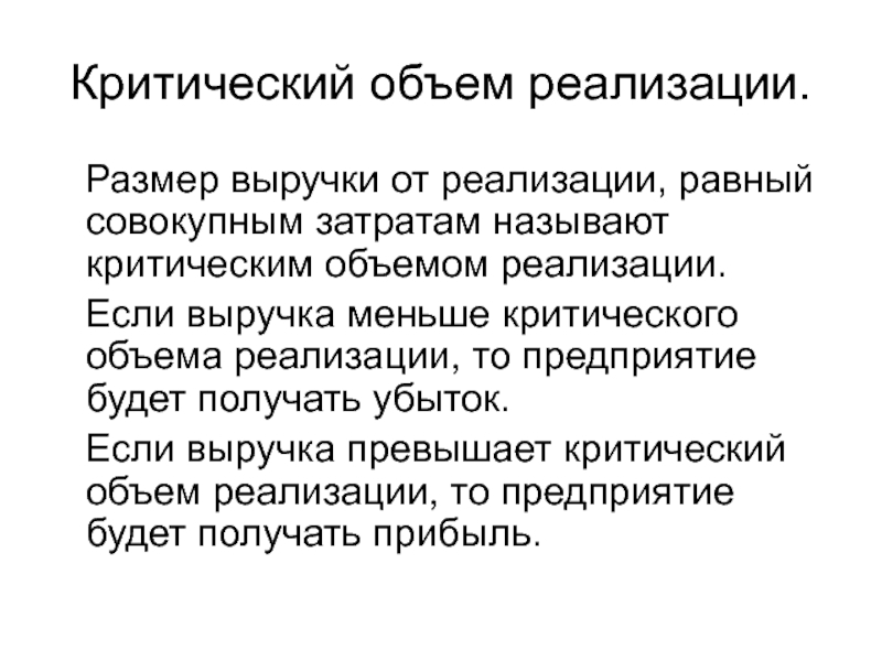 Слайд 5Критический объем реализации.