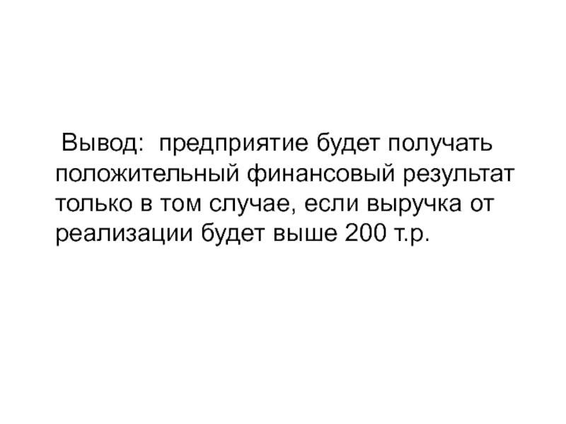 объема реализации, то предприятие будет получать убыток.
