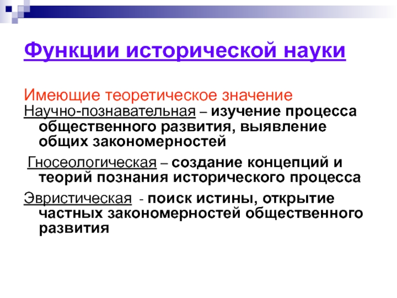 Эвристическая - поиск истины, открытие частных закономерностей общественного развития