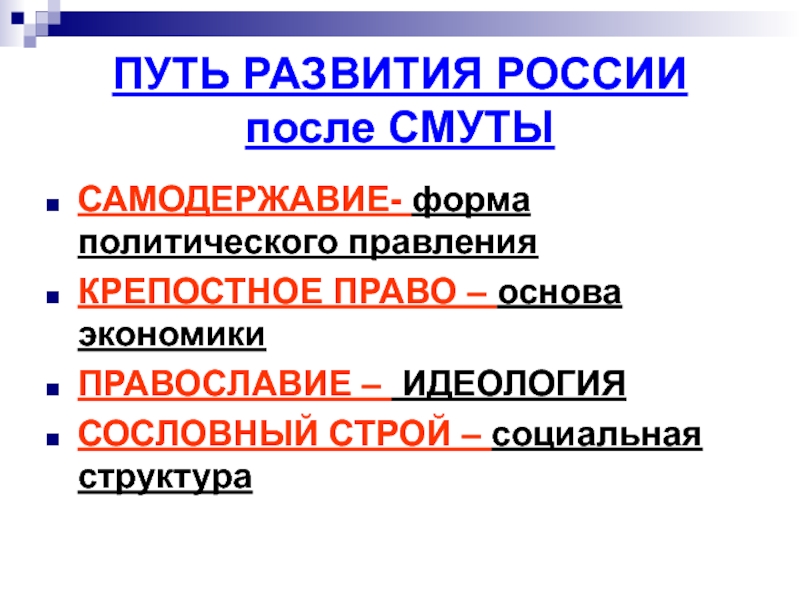 Слайд 84ПУТЬ РАЗВИТИЯ РОССИИ после СМУТЫ