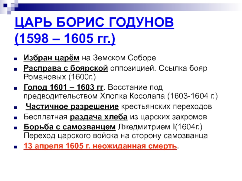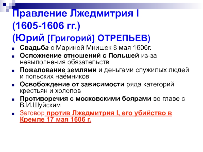 Борьба с самозванцем Лжедмитрием I(1604г.) Переход царского войска на сторону самозванца