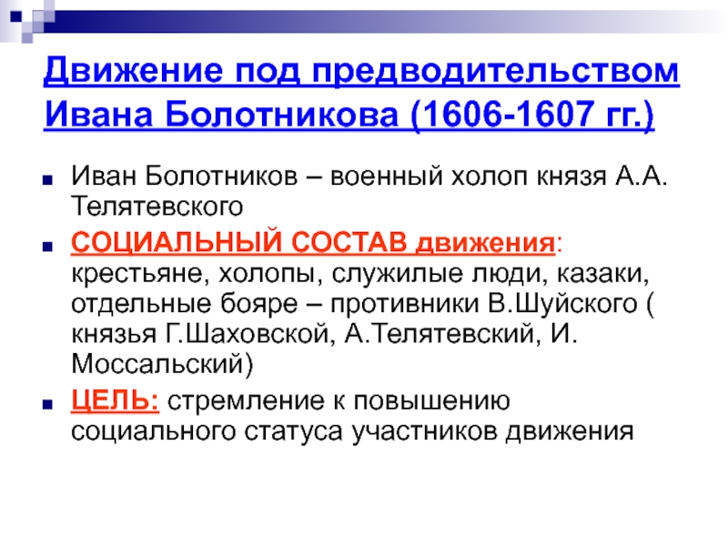 Слайд 77Движение под предводительством Ивана Болотникова (1606-1607 гг.)