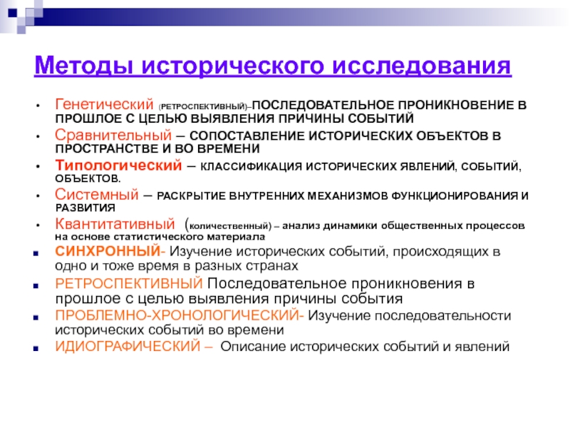 Генетический (РЕТРОСПЕКТИВНЫЙ)–ПОСЛЕДОВАТЕЛЬНОЕ ПРОНИКНОВЕНИЕ В ПРОШЛОЕ С ЦЕЛЬЮ ВЫЯВЛЕНИЯ