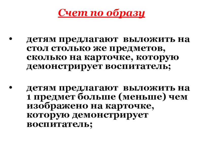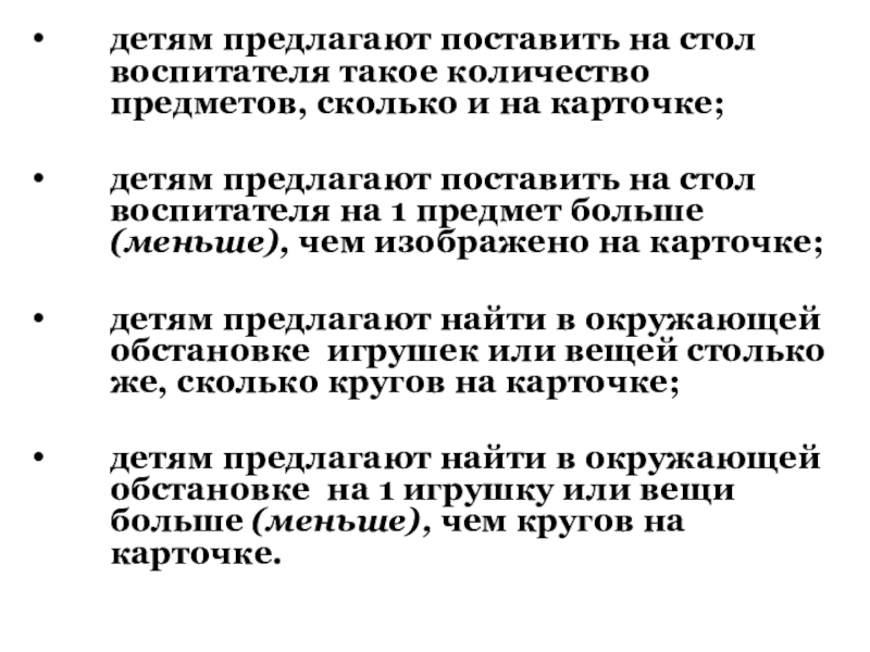 Слайд 5детям предлагают поставить на стол воспитателя такое количество предметов, сколько