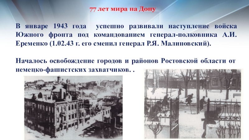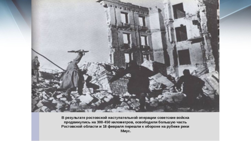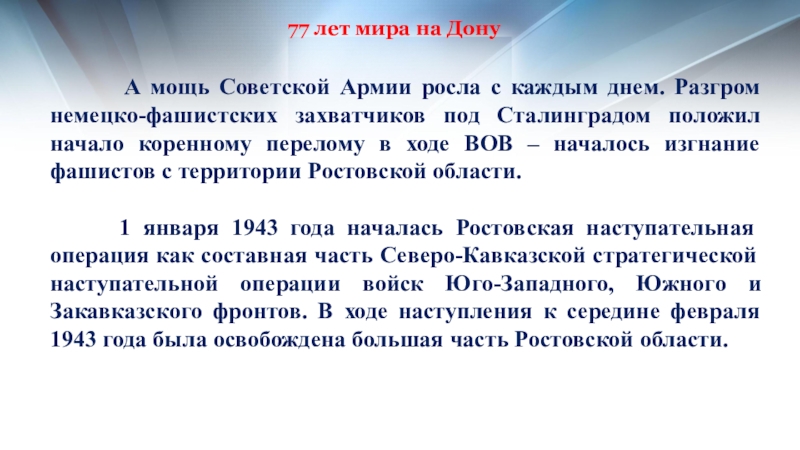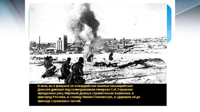 днем. Разгром немецко-фашистских захватчиков под Сталинградом положил начало коренному перелому в ходе ВОВ – началось изгнание фашистов с территории Ростовской области.