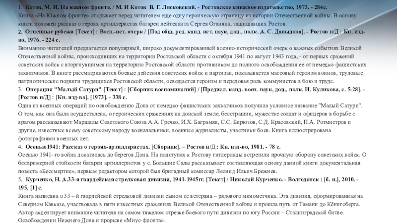 4. Осенью1941: Рассказ о героях-артиллеристах. [Сборник]. – Ростов н/Д : Кн. изд-во, 1981. - 78 с.
