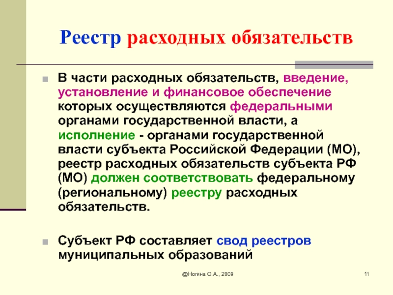 исполнение - органами государственной власти субъекта Российской Федерации (МО), реестр расходных обязательств субъекта РФ (МО) должен соответствовать федеральному (региональному) реестру расходных обязательств.