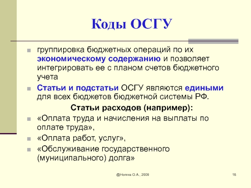 и подстатьи ОСГУ являются едиными для всех бюджетов бюджетной системы РФ.