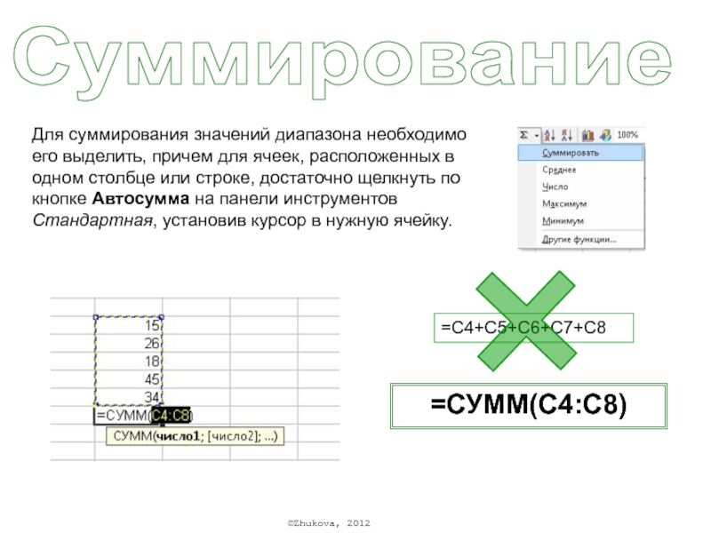 =СУММ(A2;A9)