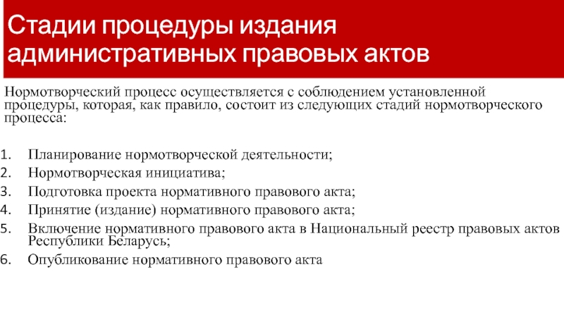Слайд 8Стадии процедуры издания административных правовых актов