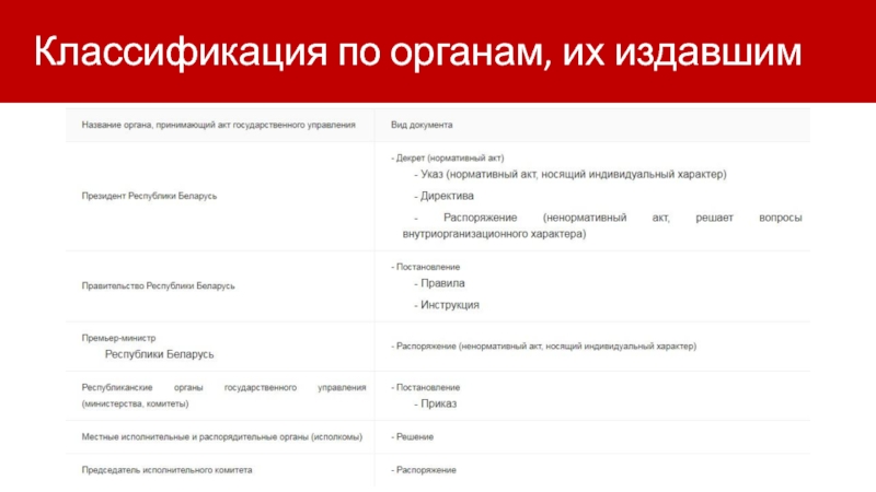 Слайд 6  Классификация по органам, их издавшим
