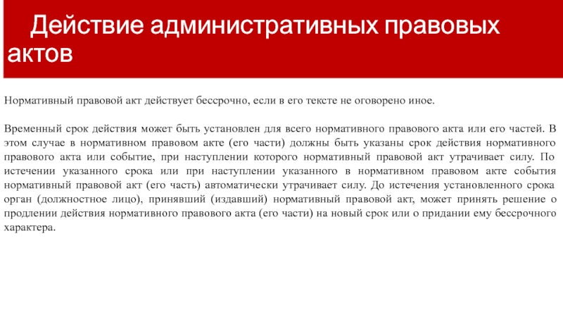 Слайд 10  Действие административных правовых актов