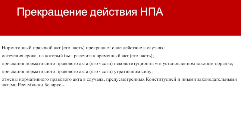 Слайд 12   Прекращение действия НПА