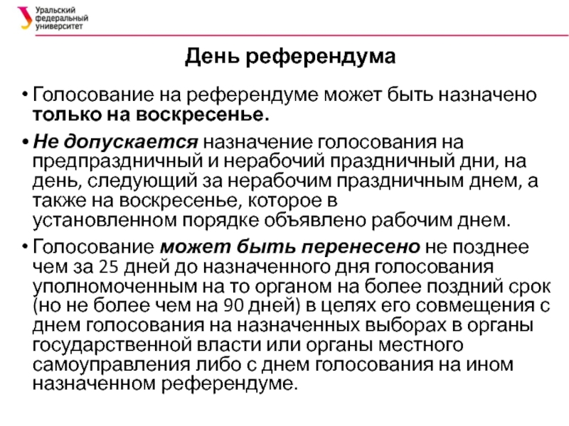 Гражданин РФ, достигший на день голосования возраста 18 лет, имеет право избирать, быть избранным депутатом представительного органа муниципального образования, голосовать на референдуме.