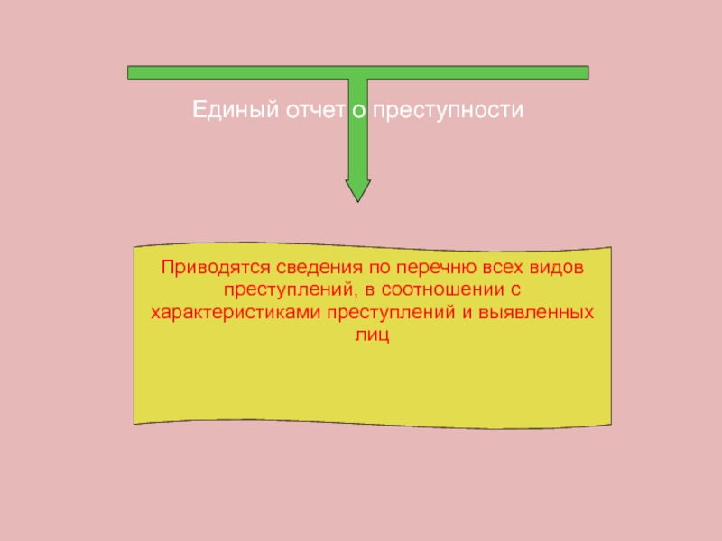Единый отчет о преступностиПриводятся сведения по перечню всех видов преступлений, в соотношении с характеристиками преступлений и выявленных